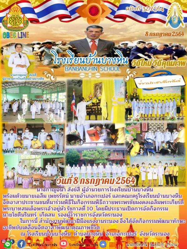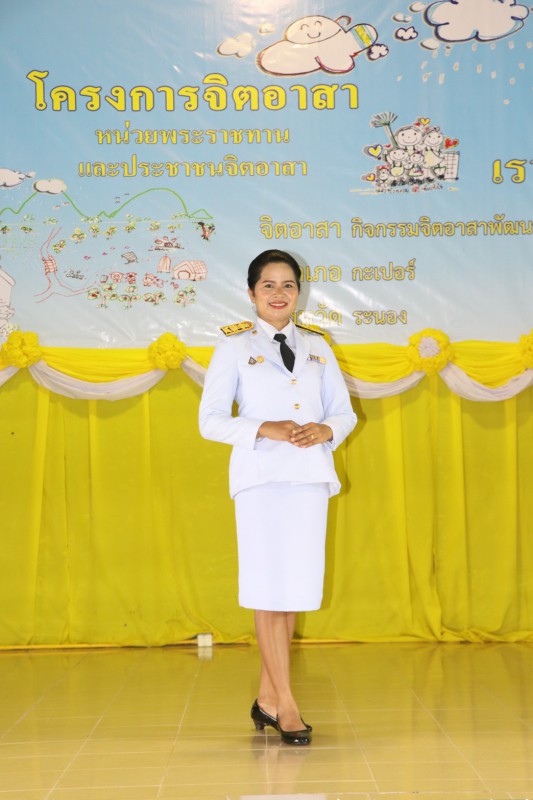 นางกาญจนา สังข์สี ผู้อำนวยการโรงเรียนบ้านบางหิน พร้อมด้วยนายเฉลิม เพชรรัตน์ นายอำเภอกะเปอร์ และคณะครูโรงเรียนบ้านบางหิน จิตอาสาประชานชนที่มาร่วมพิธีในกิจกรรมพิธีถวายพระพรชัยมงคลเฉลิมพระเกียรติ พระบาทสมเด็จพระเจ้าอยู่หัว รัชกาลที่ 10 โดยมีประธานเปิดการจัดกิจกรรม นายโชตินรินทร์ เกิดสม รองผู้ว่าราชการจังหวัดระนอง