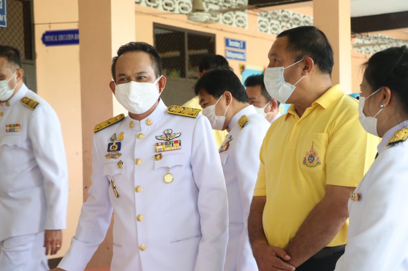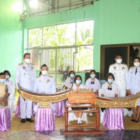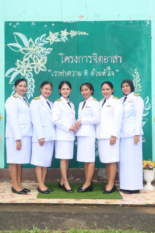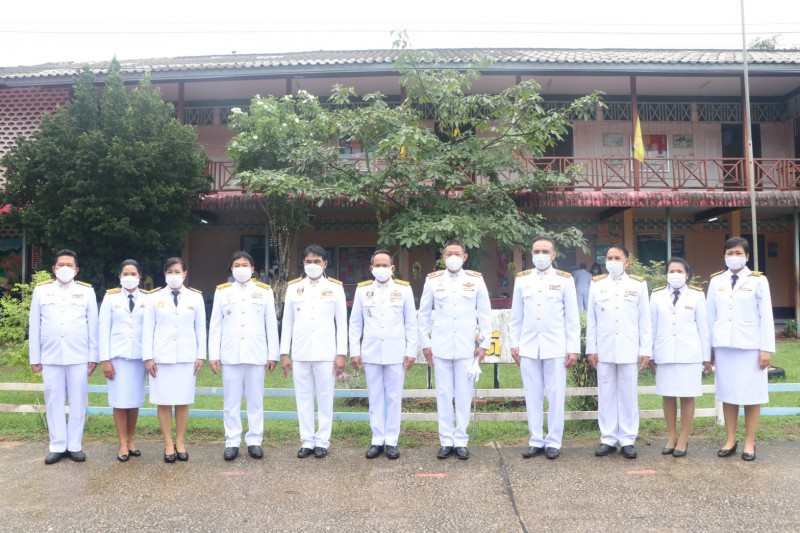 นางกาญจนา สังข์สี ผู้อำนวยการโรงเรียนบ้านบางหิน พร้อมด้วยนายเฉลิม เพชรรัตน์ นายอำเภอกะเปอร์ และคณะครูโรงเรียนบ้านบางหิน จิตอาสาประชานชนที่มาร่วมพิธีในกิจกรรมพิธีถวายพระพรชัยมงคลเฉลิมพระเกียรติ พระบาทสมเด็จพระเจ้าอยู่หัว รัชกาลที่ 10 โดยมีประธานเปิดการจัดกิจกรรม นายโชตินรินทร์ เกิดสม รองผู้ว่าราชการจังหวัดระนอง