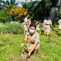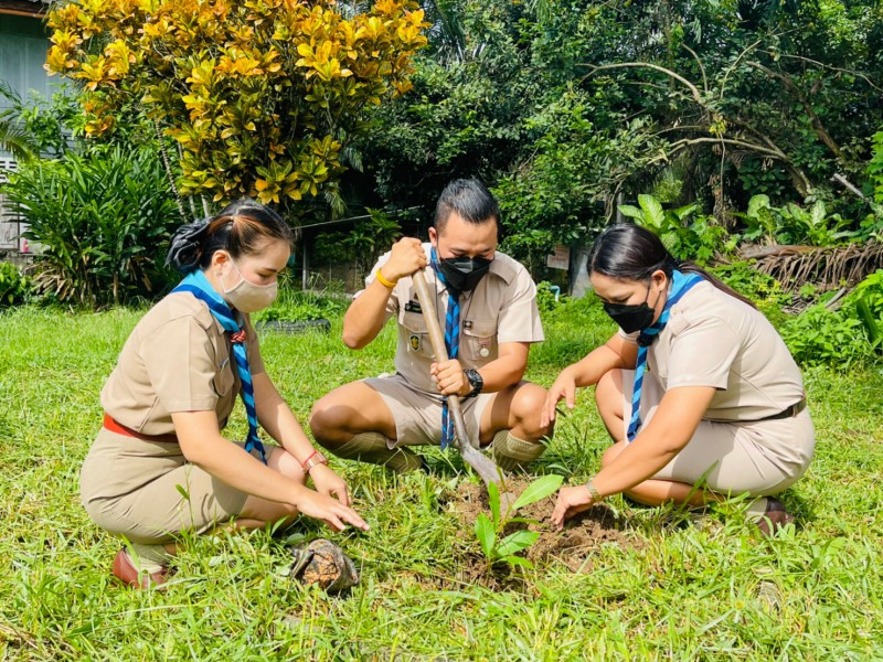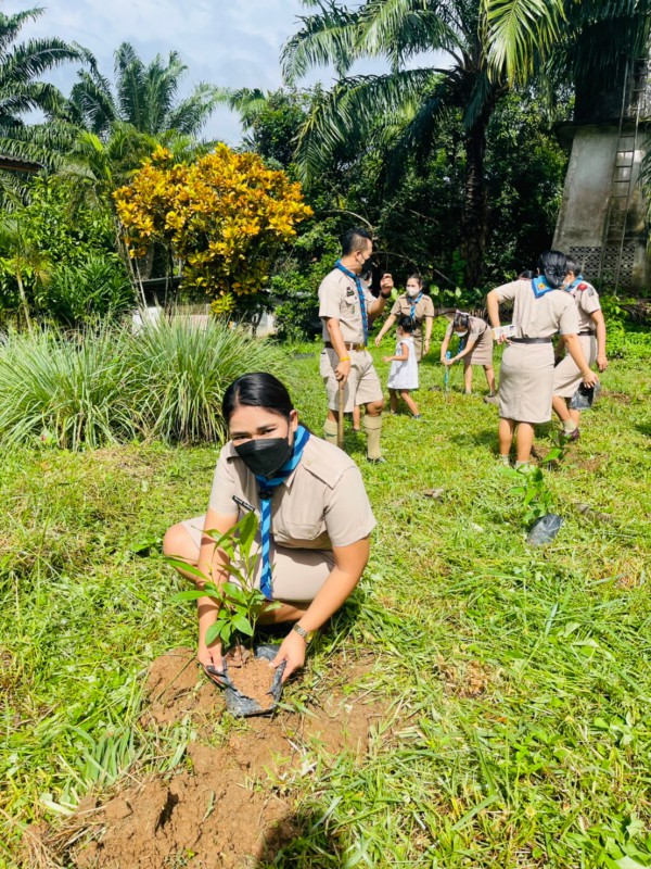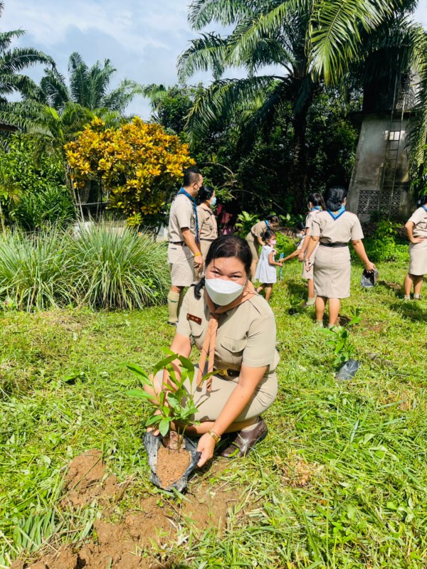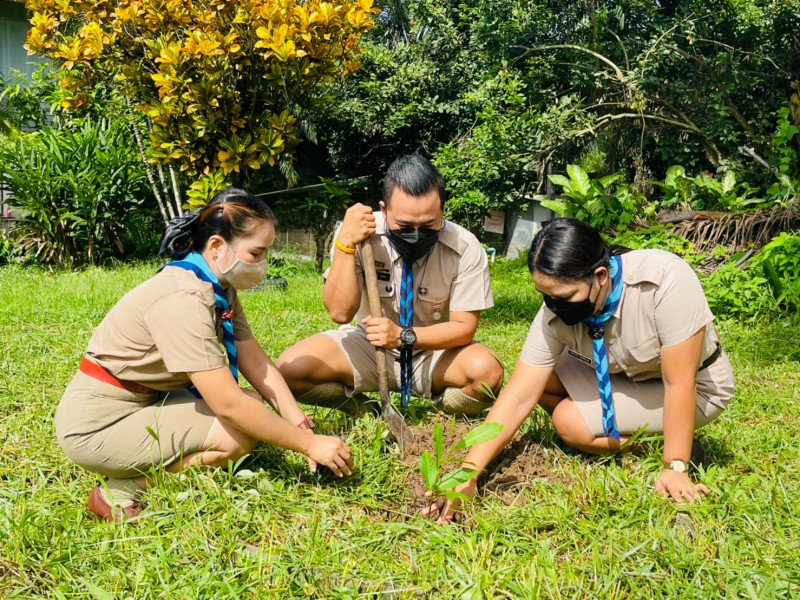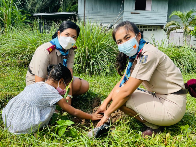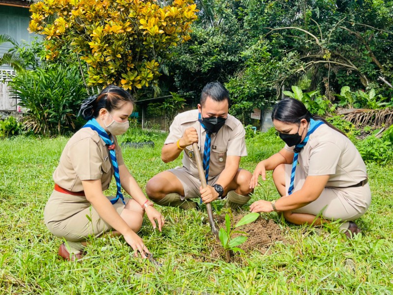 และคณะครู ร่วมกันปลูกต้นไม้ในวันต้นไม้ ประจำปี 2564
