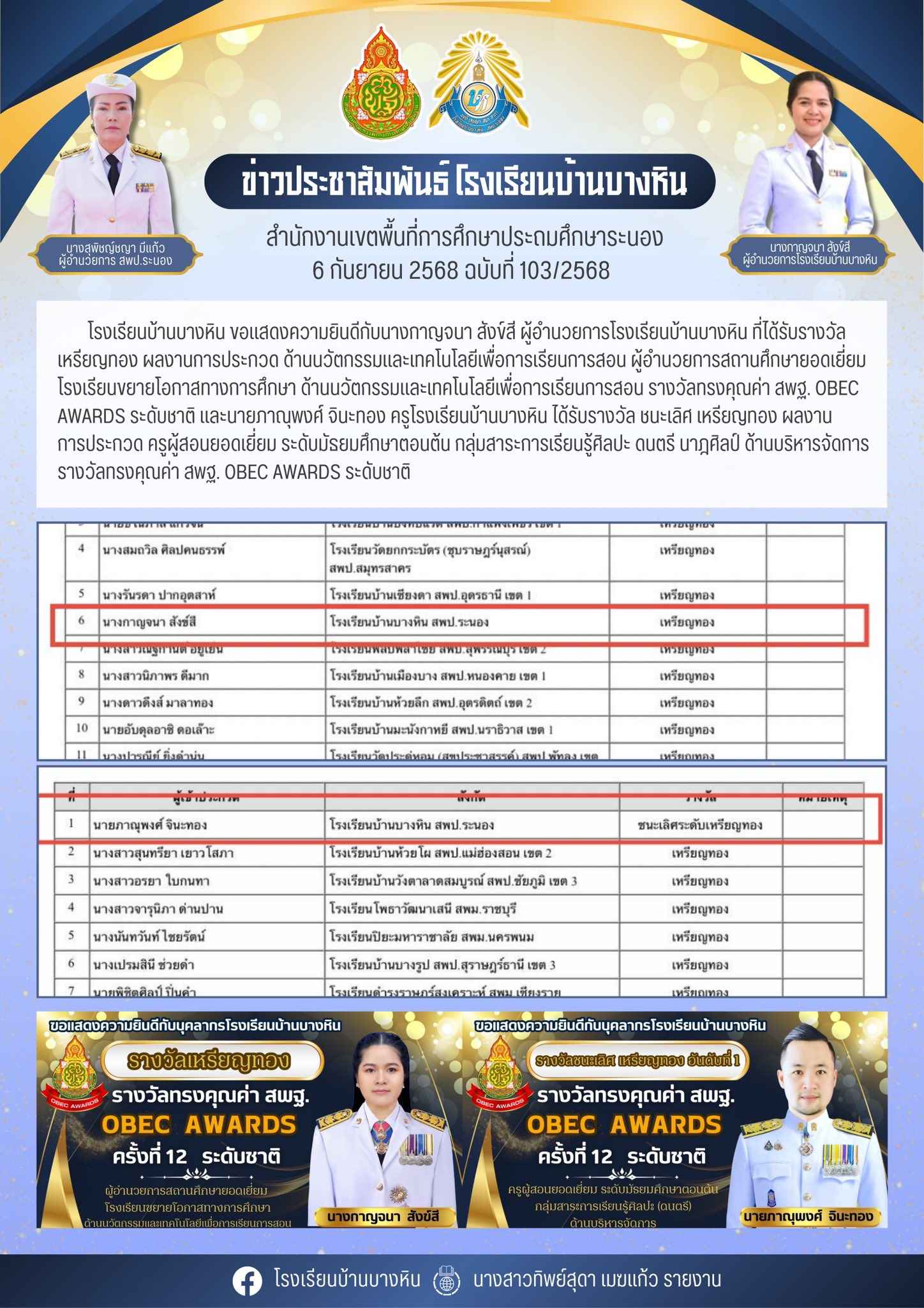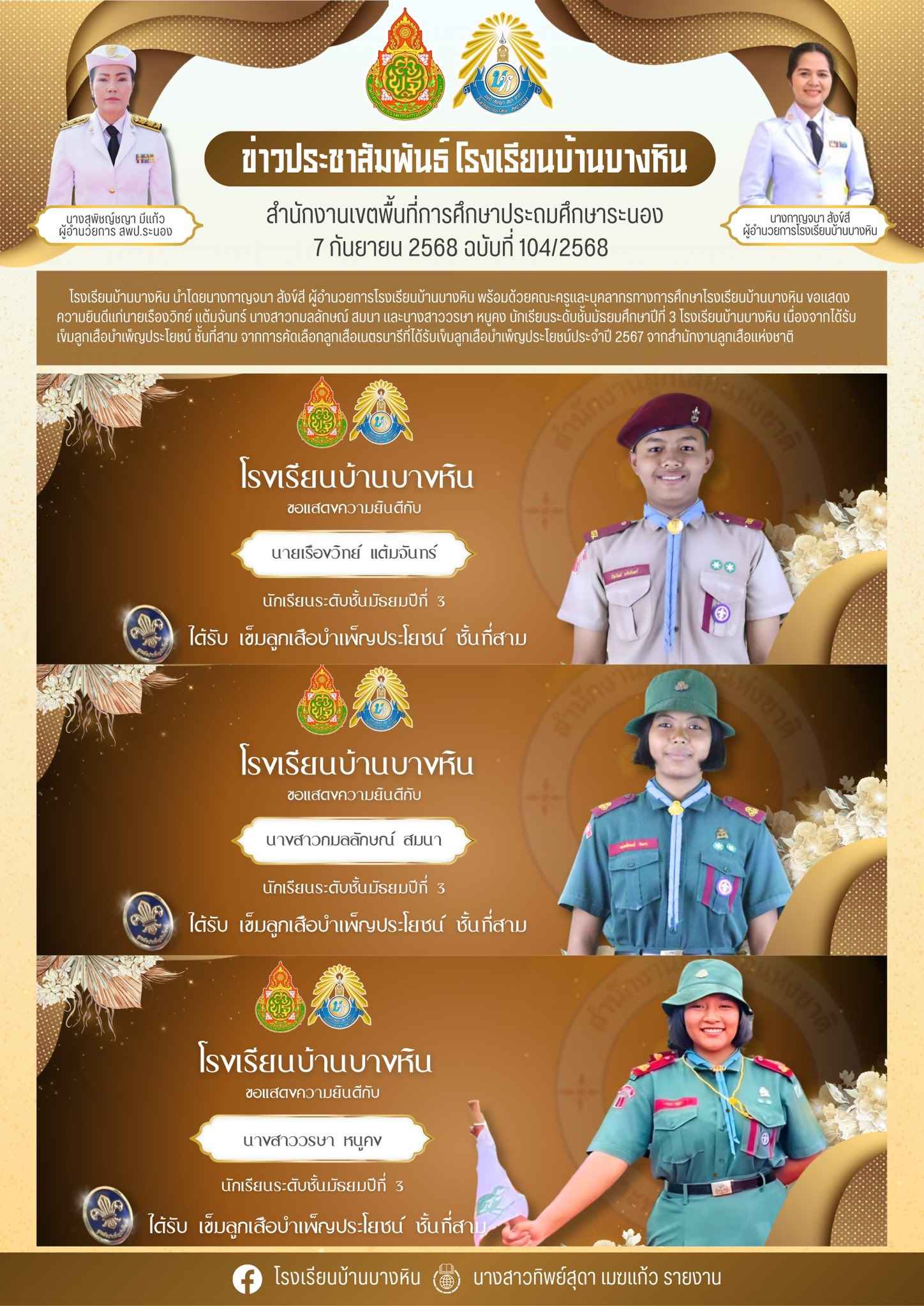 โรงเรียนบ้านบางหิน 166 ม.2 ต.บางหิน อ.กะเปอร์ จ. ระนอง 85120 นางกาญจนา สังข์สี ผู้อำนวยการโรงเรียน คณะครู และบุคลากรทางการศึกษา ยินดีต้อนรับ